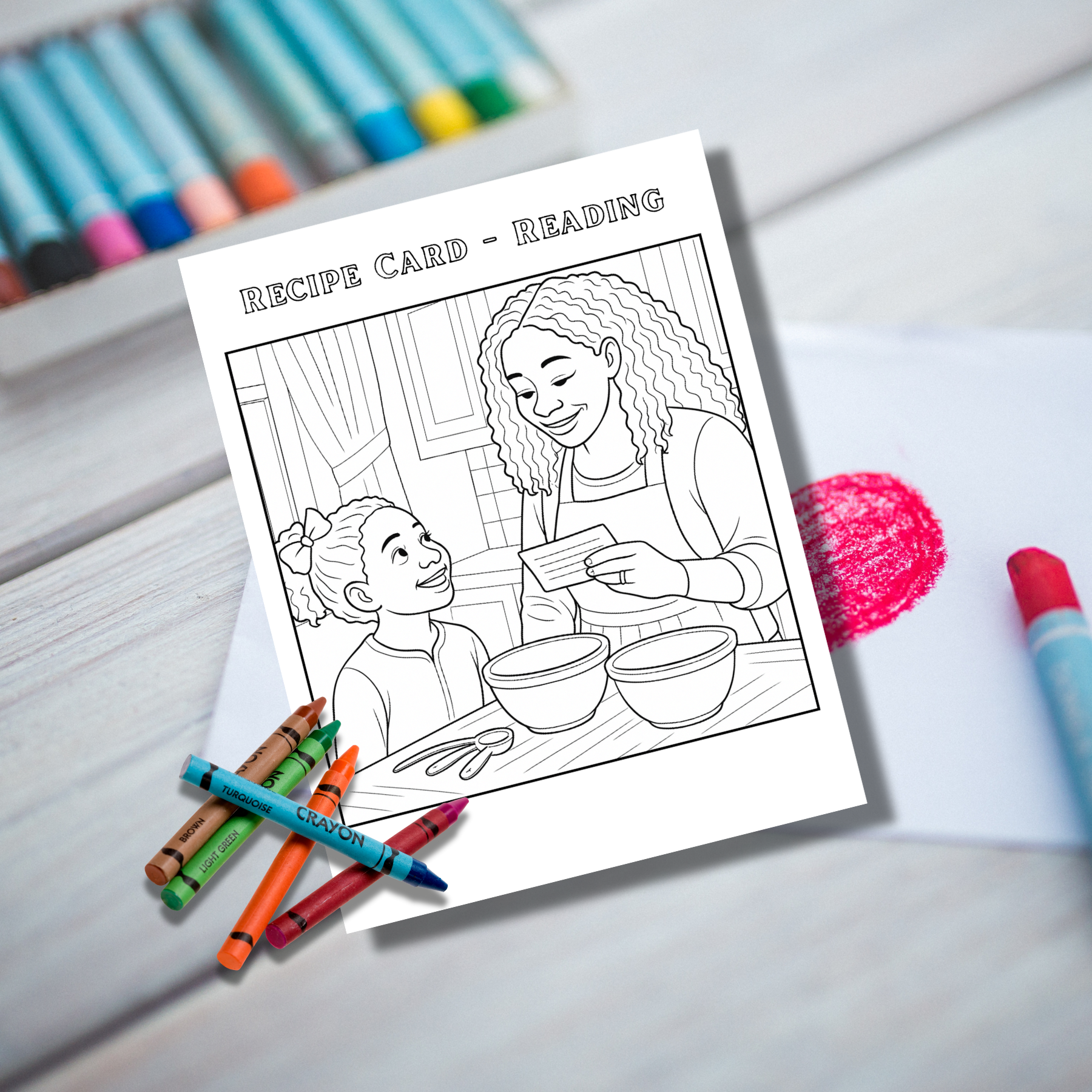 Bring the kitchen to life with this sweet, family-centered coloring page! This free printable features Mama reading the recipe card — a cozy moment that encourages kids to slow down, follow directions, and enjoy time together.